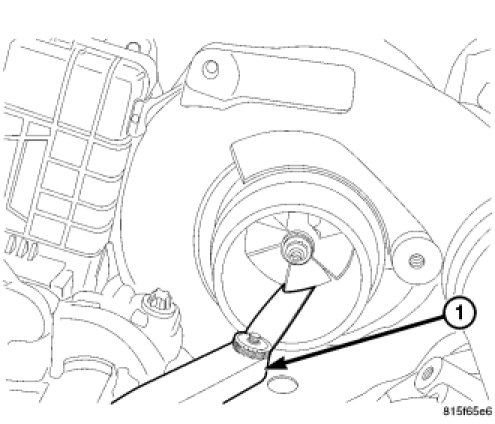 a. Insert a narrow blade or wire style feeler gauge (1) between the compressor wheel and the housing.