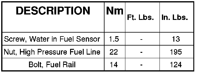 Fuel Delivery Torque Specifications