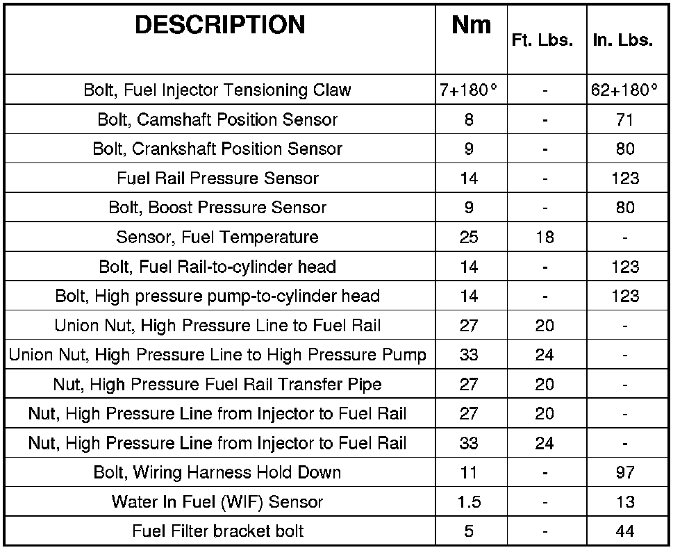 Fuel Injection Torque Specifications