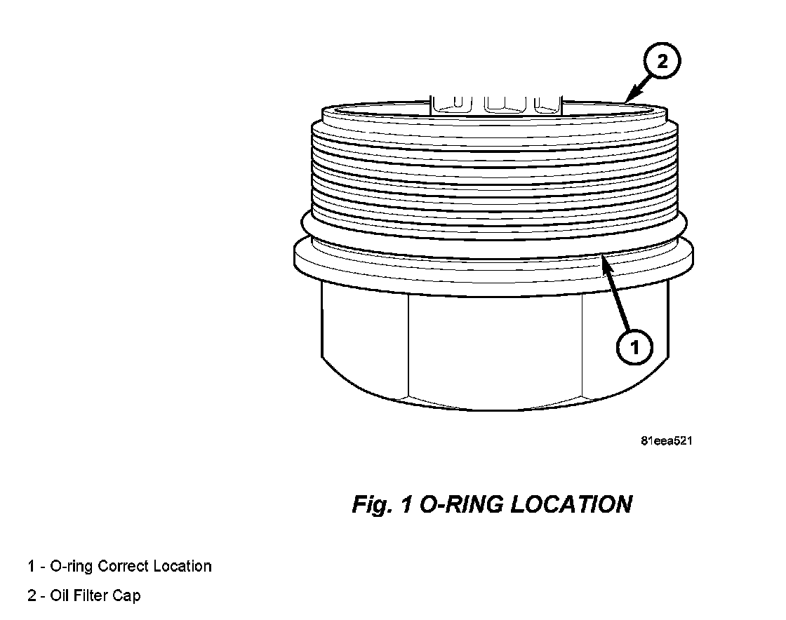 When servicing the oil filter on the 3.0L diesel engine make sure that the 0-ring on the oil filter cap is properly installed. The 0-ring needs to be located in proper grove (Fig. 1).