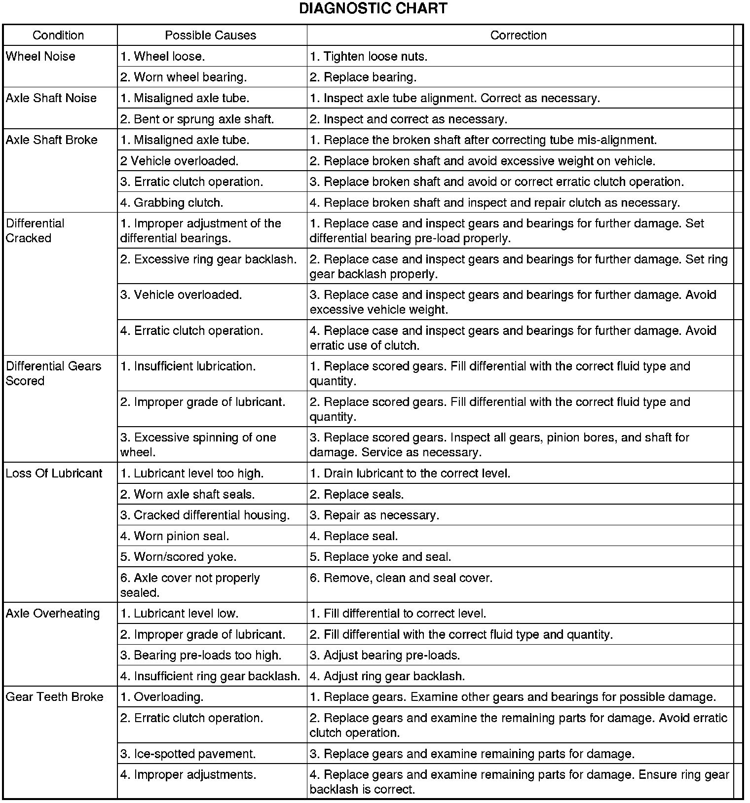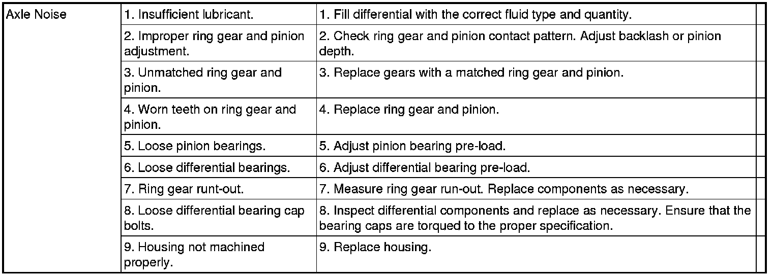 When road testing, first warm-up the axle fluid by driving the vehicle at least 5 miles and then accelerate the vehicle to the speed range where the noise is the greatest. Shift out-of-gear and coast through the peak-noise range. If the noise stops or changes greatly: