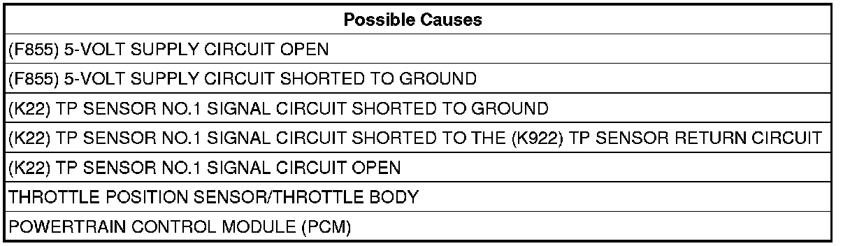 5. (K22) TP SENSOR NO.1 SIGNAL CIRCUIT SHORTED TO GROUND