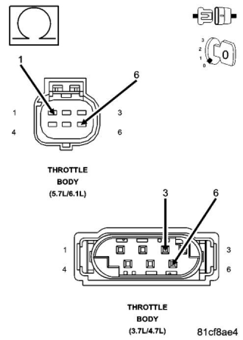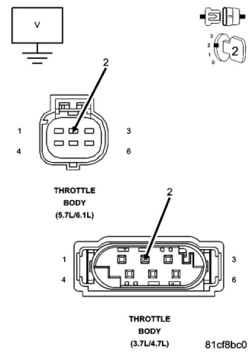 Look for broken, bent, pushed out or corroded terminals. Verify that there is good pin to terminal contact in the Throttle Body and Powertrain Control Module connectors.