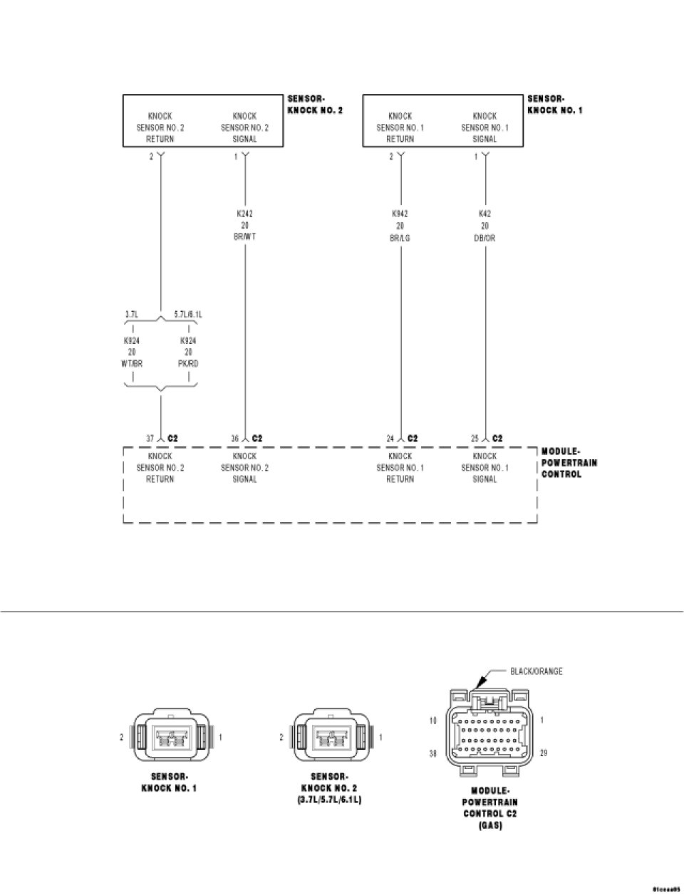 - Repair the short between the (K242) Knock Sensor No.2 Signal circuit and the (K924) Knock Sensor No.2 Return circuit.