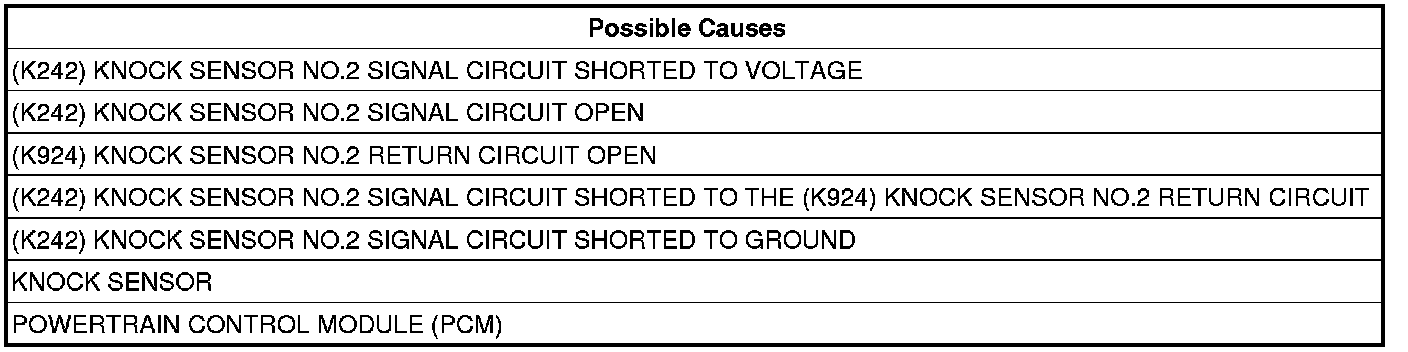 - Repair the short to voltage in the (K242) Knock Sensor No.2 Signal circuit.