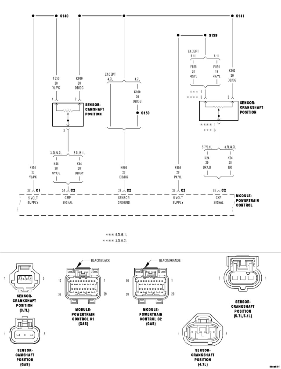 - Verify that there is good pin to terminal contact in the CMP Sensor and Powertrain Control Module connectors. Replace the Camshaft Position Sensor if no problems were found with the connectors.