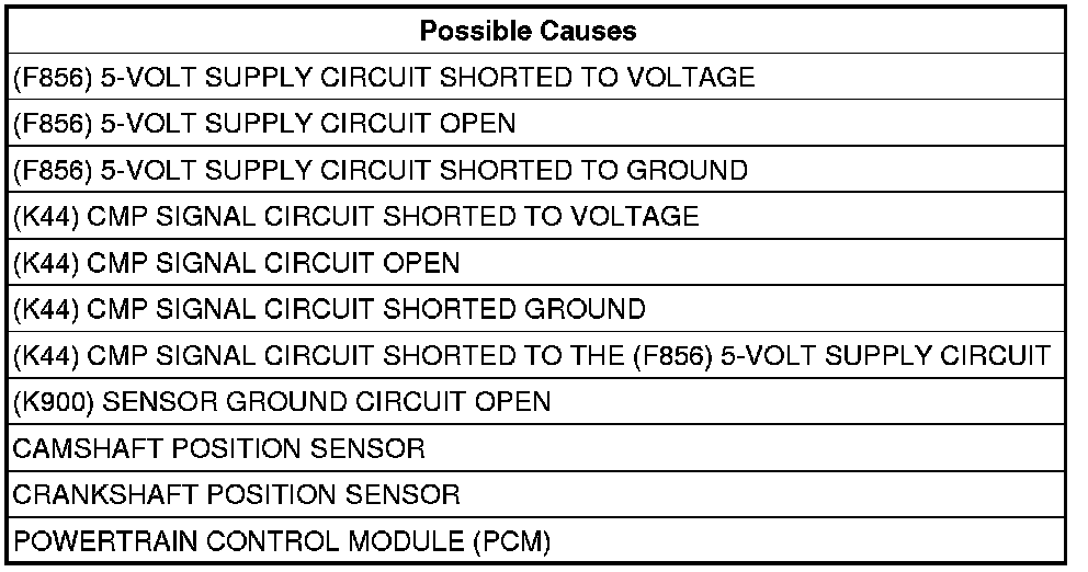 5. (K44) CMP SIGNAL CIRCUIT SHORTED TO THE (F856) 5-VOLT SUPPLY CIRCUIT