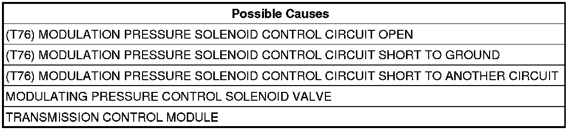 - Repair the (T76) Modulation Pressure Solenoid Control circuit for an open.