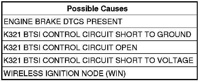 - Repair the (K321) BTSI Control circuit for a short to voltage.