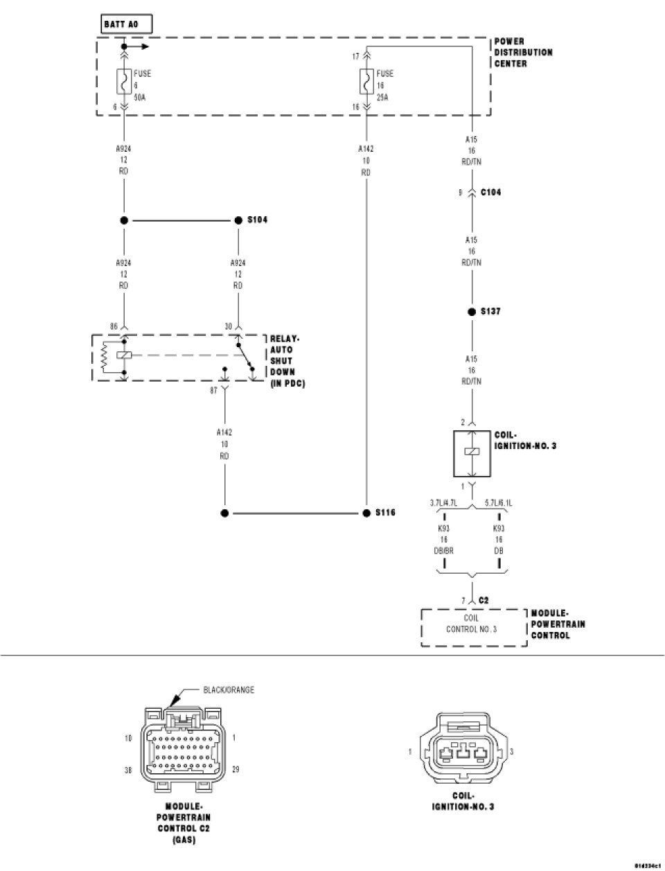 - Repair the open or short to ground in the (A15) ASD Relay Output circuit between the IPM and Coil harness connector.