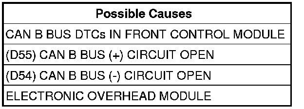 If the Can B Bus (+) or B Bus (-) circuit is open, shorted to voltage, or shorted to ground.