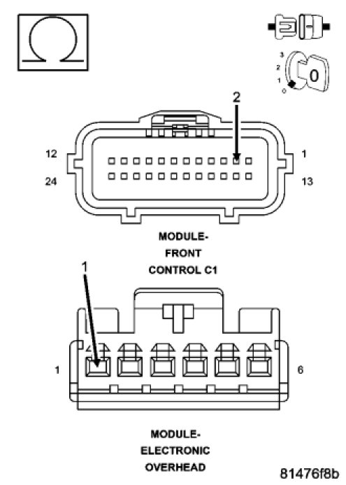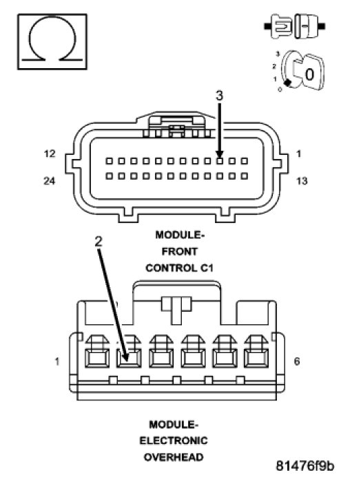 Measure the resistance of the (D55) Can B Bus (+) circuit between the Front Control Module C1 harness connector and the Electronic Overhead Module harness connector.
