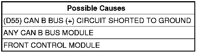 - Repair the (D55) CAN B Bus (+) circuit for a short to ground.