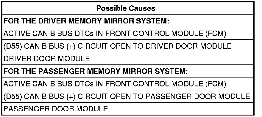 If the Driver/Passenger Door Module senses that the (D55) Can B Bus (+) circuit is either open, or shorted to voltage, or shorted to ground.