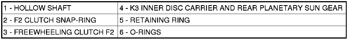 2. Remove rear sun gear (4) with the K3 internally toothed disk carrier and rear freewheeling clutch F2 (3).