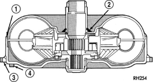 Pump seal (1) leaks tend to move along the drive hub and onto the rear of the converter. Pump o-ring or pump body leaks follow the same path as a seal leak. Pump attaching bolt (3) leaks are generally deposited on the inside of the converter housing (5) and not on the converter itself. Pump seal (1) or gasket (4) leaks usually travel down the inside of the converter housing.