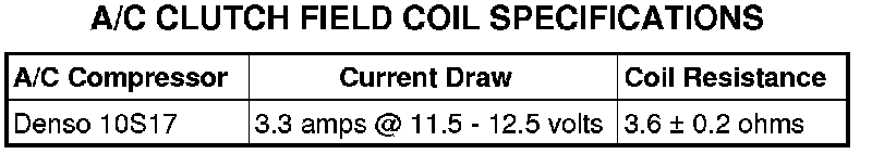 b. If the A/C clutch field coil current reading is above specifications, the coil is shorted and must be replaced.
