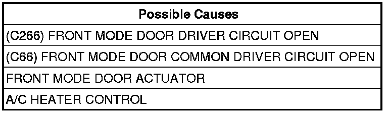 If the (C266) Front Mode Door Driver circuit or the (C66) Front Mode Door Common Driver circuit is open.
