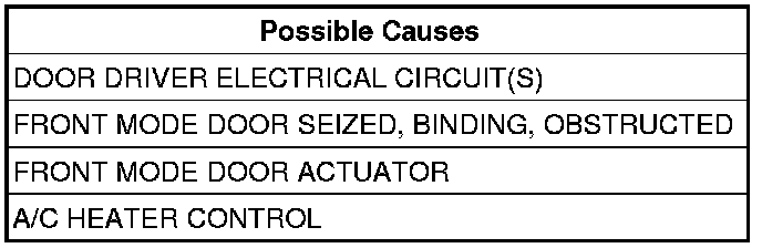 Inspect the actuator, linkage, and housing assembly for a condition causing the front mode door to seize or bind.