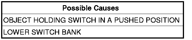 Inspect the lower switch bank for an object holding the switch in a pushed position. If present, remove the object.