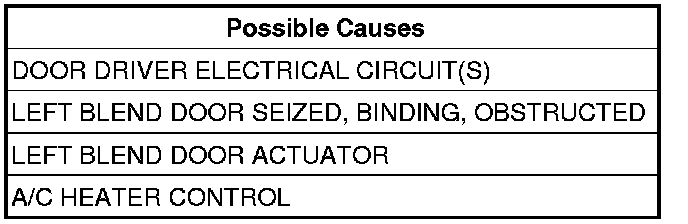 Inspect the actuator, linkage, and housing assembly for a condition causing the left blend door to seize or bind.