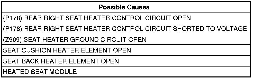 - Repair the (P178) Rear Right Seat Heater Control circuit for a short to voltage.