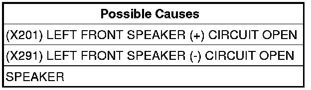 - Repair the (X201) Left Front Speaker (+) circuit for an open condition.