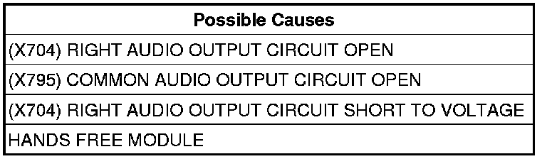 The Hands Free Module detects high voltage on the (X704) Right Audio Output circuit.