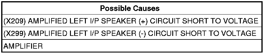 - Repair the (X209) Amplified Left I/P Speaker (+) circuit for a short to voltage.