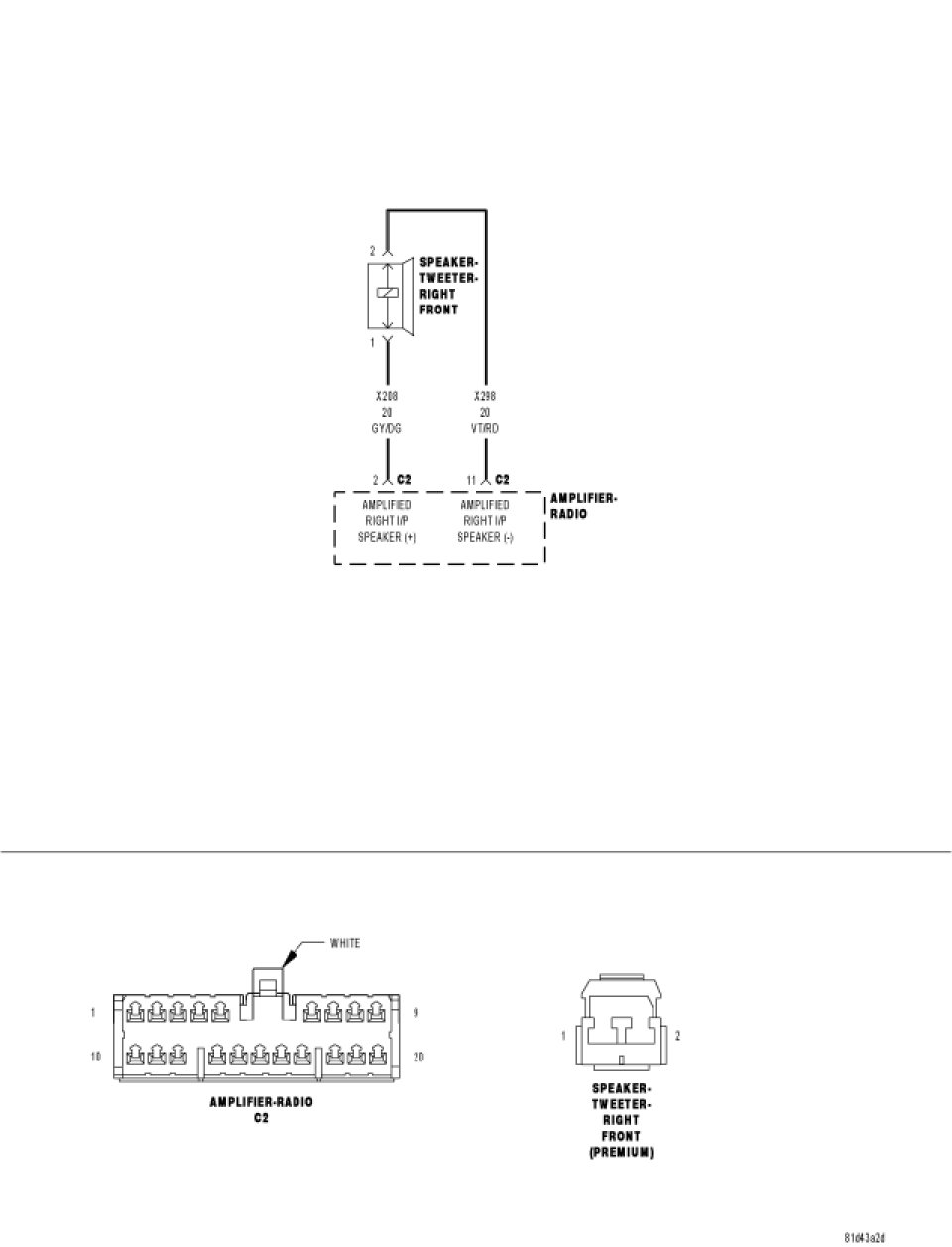 - Repair the (X208) Amplified Right I/P Speaker (+) circuit for an open.