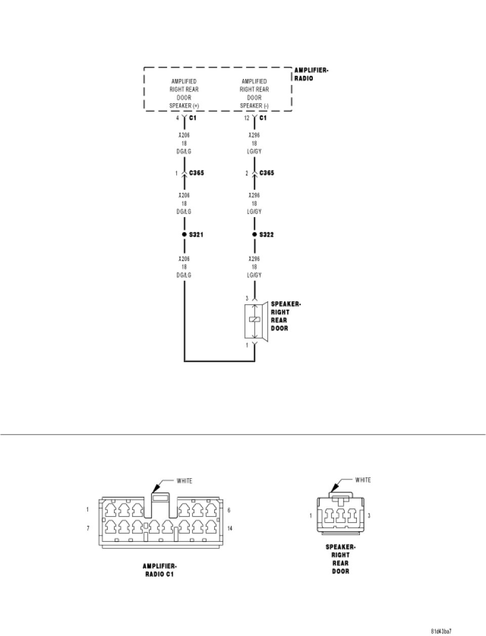 Measure the resistance between the (X304) Amplified Right Rear Speaker (+) circuit, and the (X394) Amplified Right Rear Speaker (-) circuit.
