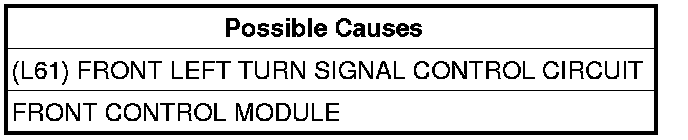 - Repair the (L61) Front Left Turn Signal Control circuit for a short to ground.