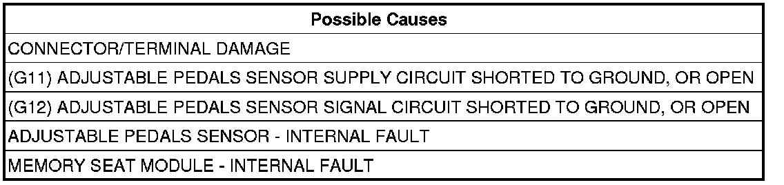 - Repair the (G12) Adjustable Pedals Sensor Signal circuit for a short to ground.