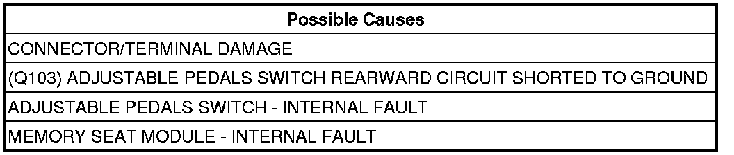 - Repair the (Q103) Adjustable Pedals Switch Rearward circuit for a short to ground.
