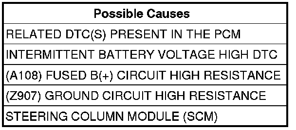 If the voltage to the Steering Column Module (SCM) is above 16.5 volts for more than one minute.