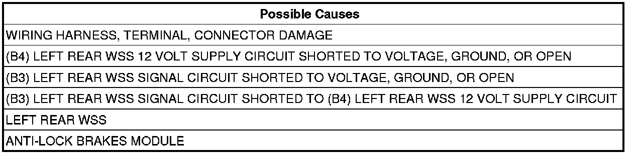 - Repair the (B3) Left Rear WSS Signal circuit for a short to voltage.