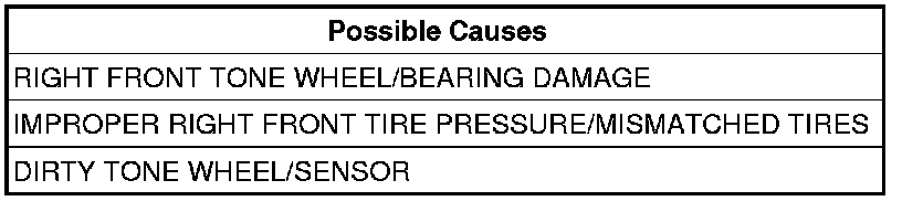 Check the Right Front Tone Wheel/Bearing for damage.