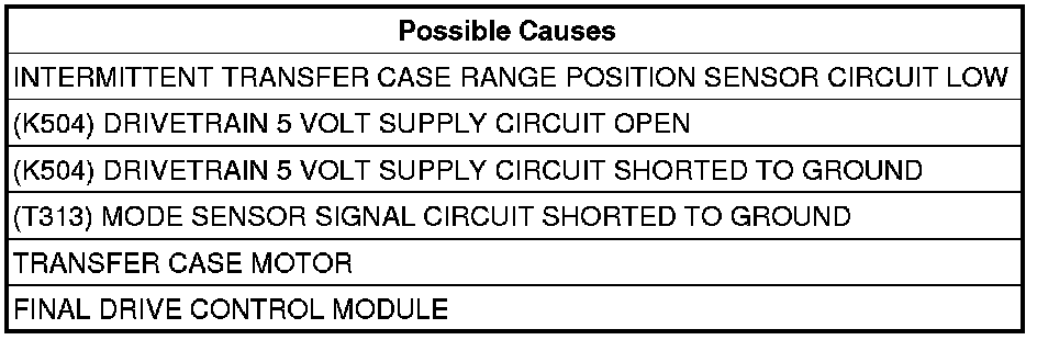 - Repair the (T313) Mode Sensor Signal circuit for a short to ground.