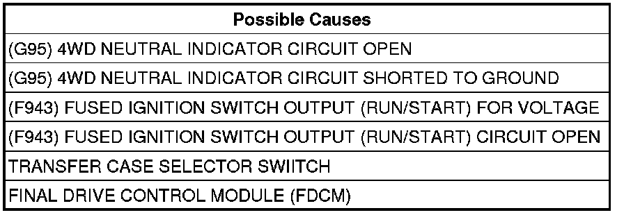 - Repair the open (G95) 4WD Neutral Indicator circuit.