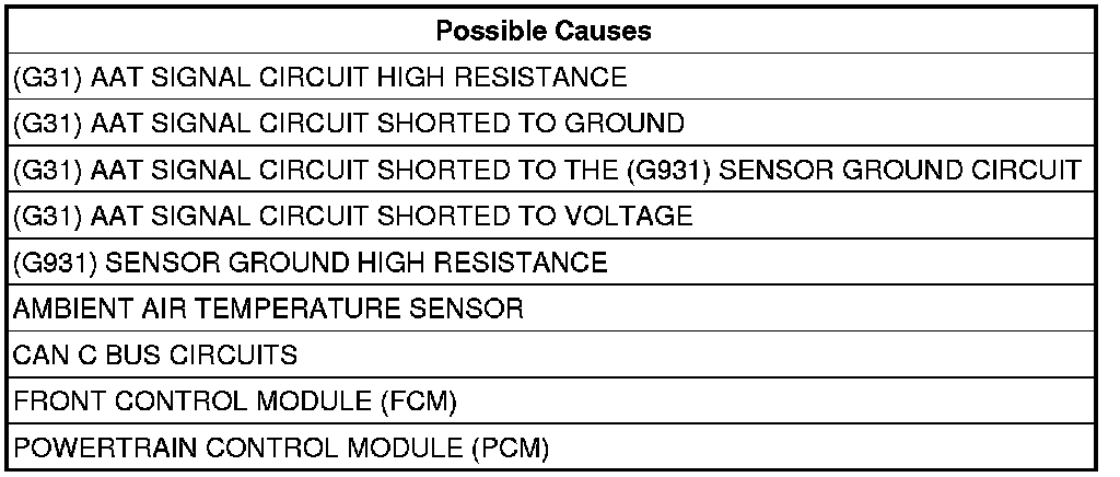 - Repair the short between the (G931) Sensor ground circuit and the (G31) AAT Signal circuit.