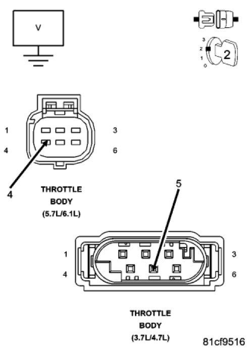 Look for broken, bent, pushed out or corroded terminals. Verify that there is good pin to terminal contact in the Throttle Body and Powertrain Control Module connectors.