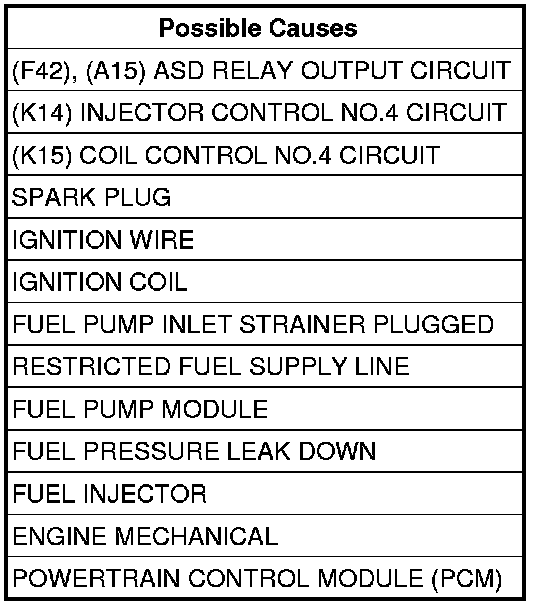 Check the (K14) Injector Control No.4 circuit for an open, short to ground, and short to voltage.