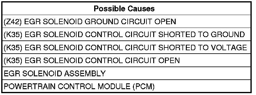 - Repair the short to voltage in the (K35) EGR Solenoid Control circuit.