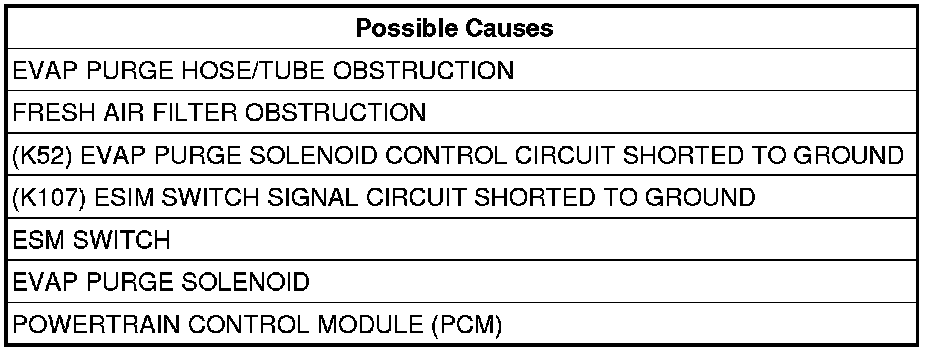 - Repair the short to ground in the (K52) Evap Purge Control circuit.