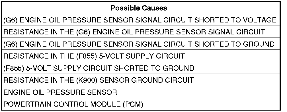 2. (G6) ENGINE OIL PRESSURE SENSOR SIGNAL CIRCUIT SHORTED TO VOLTAGE
