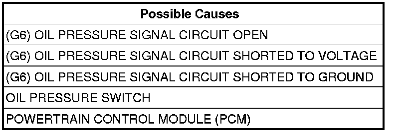 - Repair the short to ground in the (G6) Oil Pressure Signal circuit.