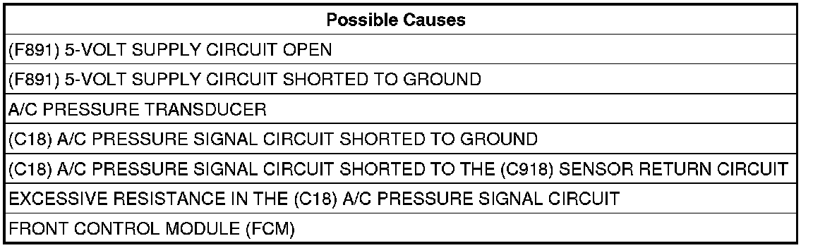 5. (C18) A/C PRESSURE SIGNAL CIRCUIT SHORTED TO THE (C918) SENSOR RETURN CIRCUIT