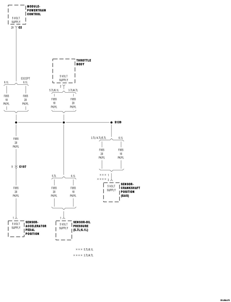 Disconnect all the Sensors that share the (F855) Primary 5-volt Supply circuit.