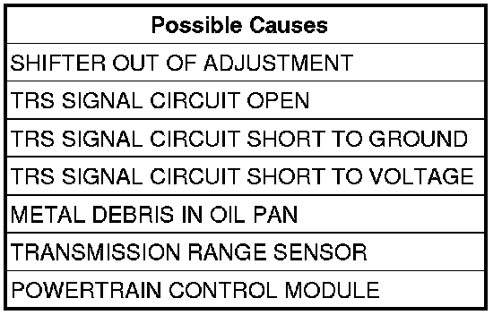 NOTE: If the Shift Lever Position test fails, make sure to note the identification of the TRS Signal circuit for future reference.
