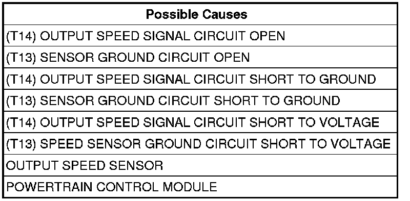 - Repair the (T14) Output Speed Signal circuit for a short to voltage.